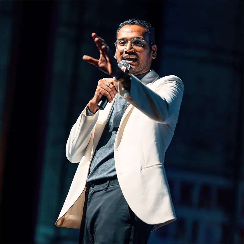 When he is not rocking comedy stages, he is on movie sets. His debut lead in the Indie File Simple Manusan, won multiple nominations across different film festivals. His next film is scheduled to be released early 2027!